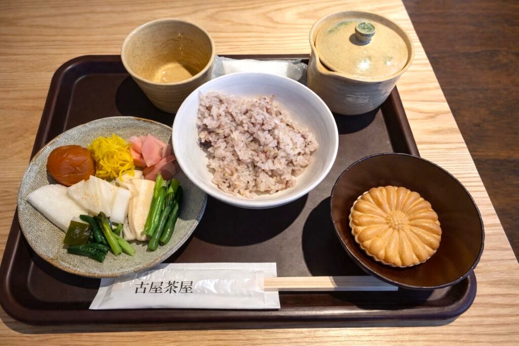 「阿古屋茶屋」は、京都らしい落ち着いた町家でお漬物を主役にした食事が楽しめるお店。