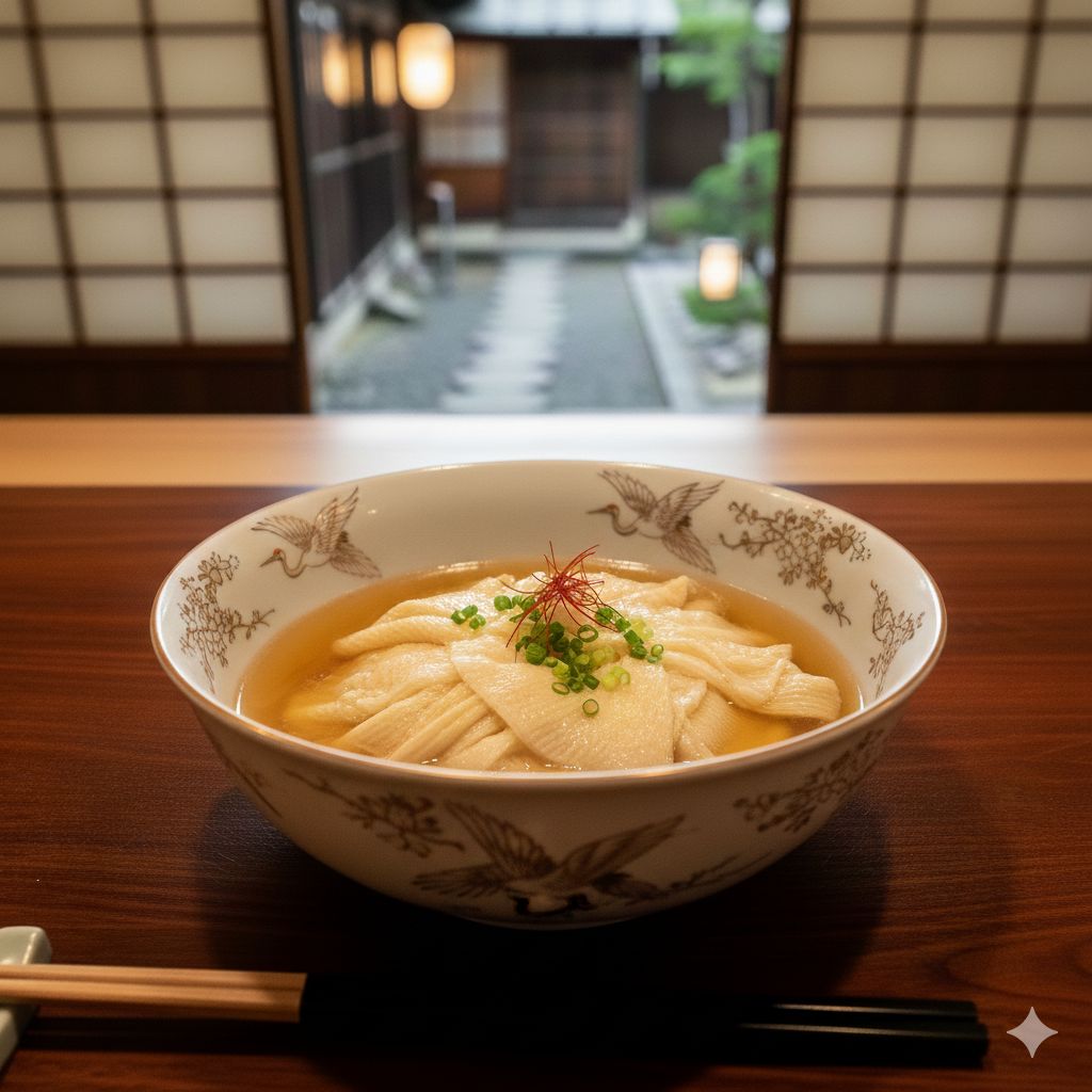 低い温度でゆっくり張られることで重なりのあるコクが増し、やわらかくほどける食感は京都らしい静かな贅沢です。
